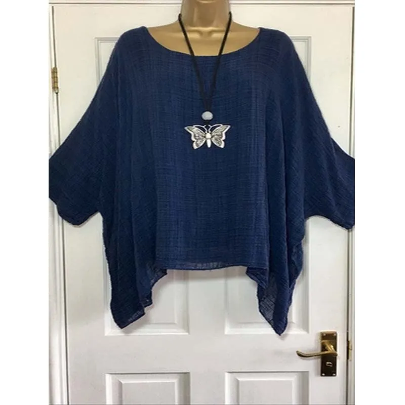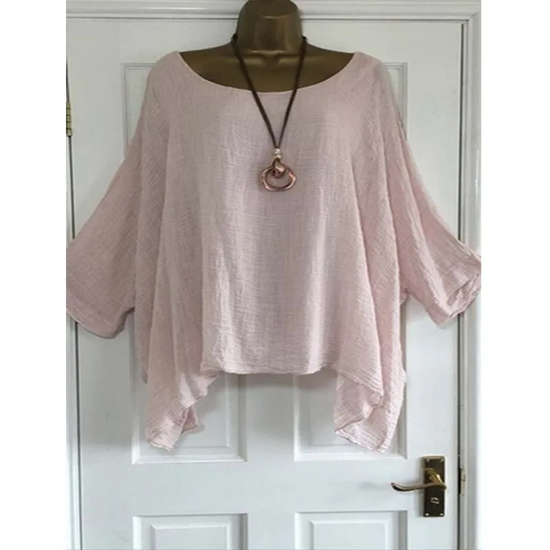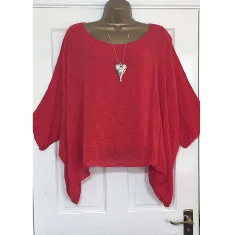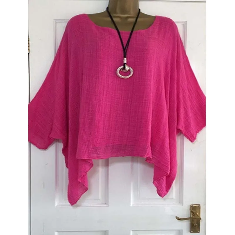 Bat Sleeve Pullover Blouse Female Plus Size 5Xl Loose Casual Tops Women O Neck Half Sleeve Simple Summer Tops